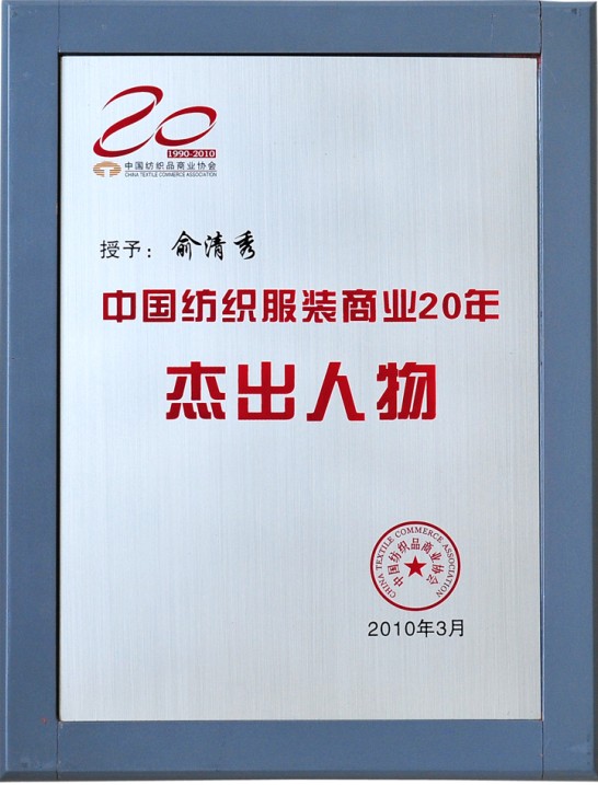 俞总获评中国纺织服装商业20年杰出人物