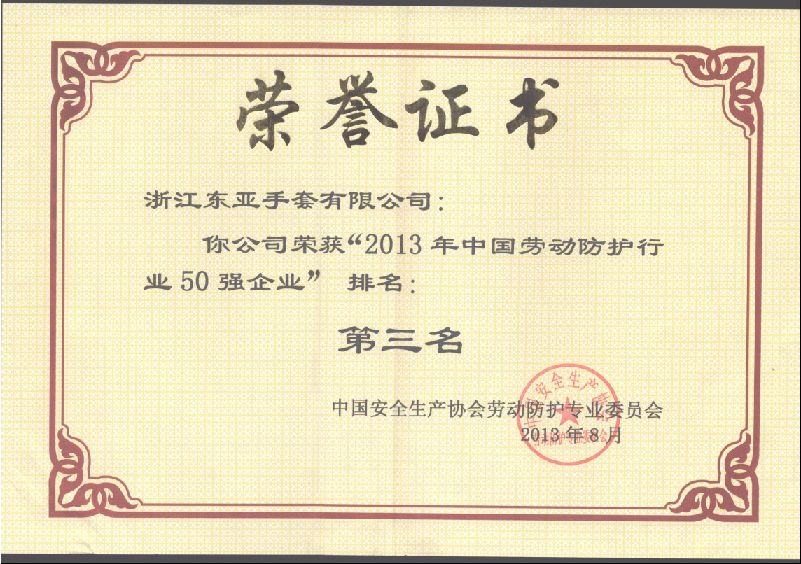 2013年中国劳动防护行业50强企业
